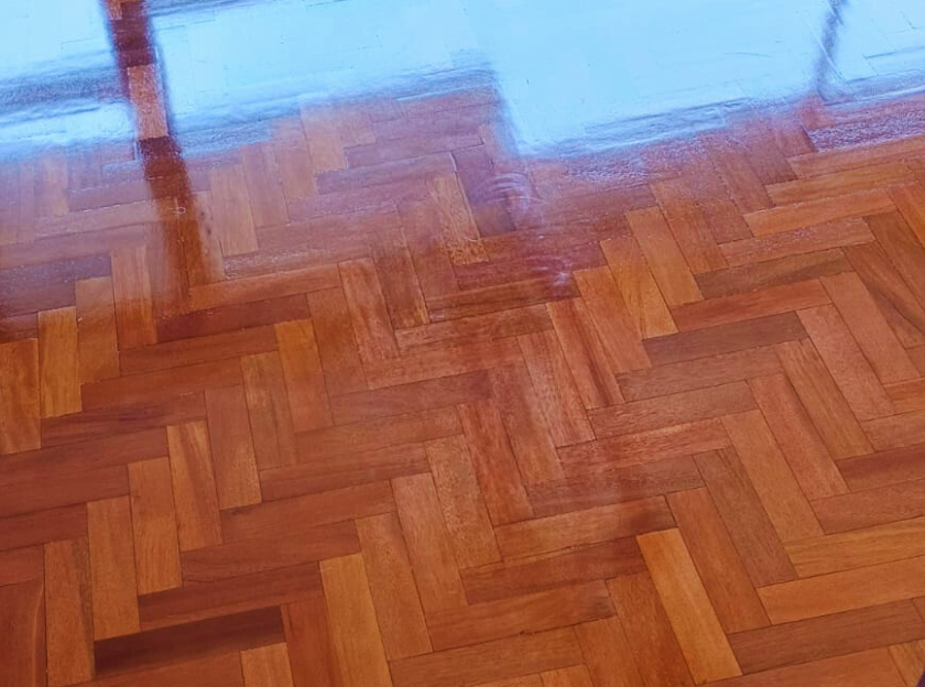 Después de la limpieza, los pisos quedan listos para aplicar restaurador o aceite Bona, logrando un brillo uniforme y una capa protectora duradera que extiende la vida útil del acabado.